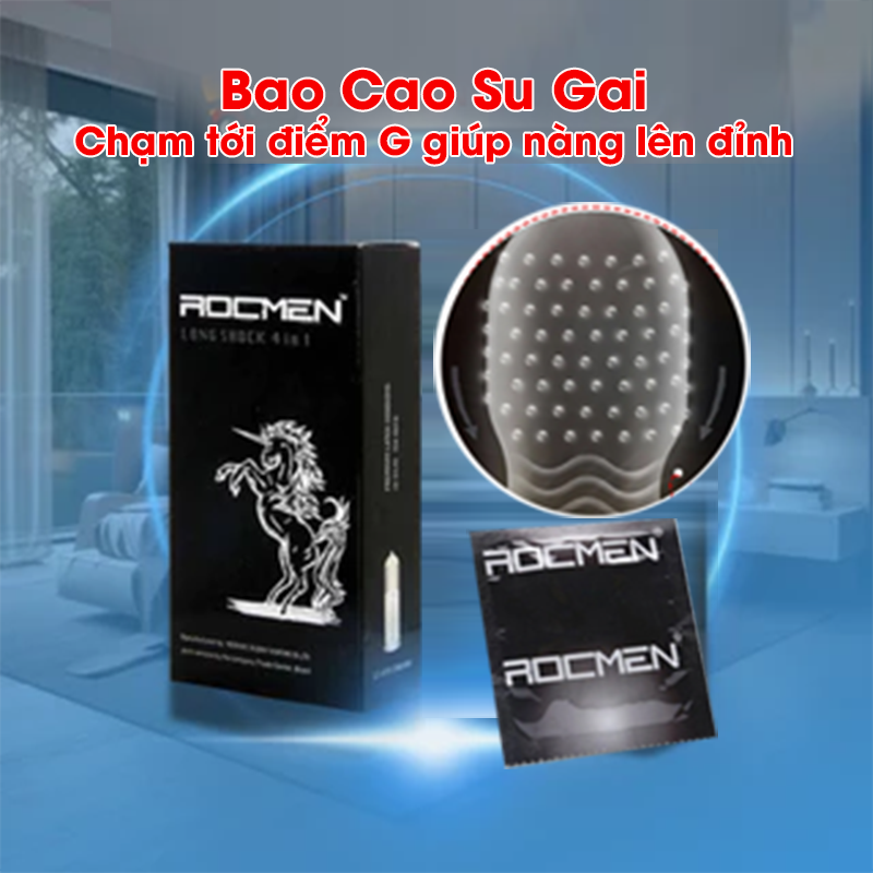 Bao Cao Su Rocmen Đen Gân Gai, Tăng Khoái Cảm (Hộp 12C)